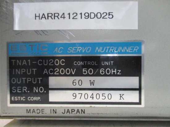 中古 ESTIC エスティック TNA1-CU20C AC SERVO NUTRUNNER 60W AC200V 60W 50/60Hz