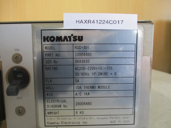 中古 Komatsu RCC-301 Thermo Module Control Box 5A 50/60Hz