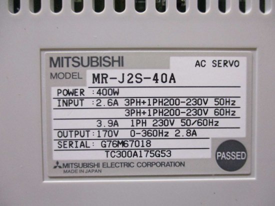 中古 MITSUBISHI AC SERVO MR-J2S-40A AC サーボアンプ