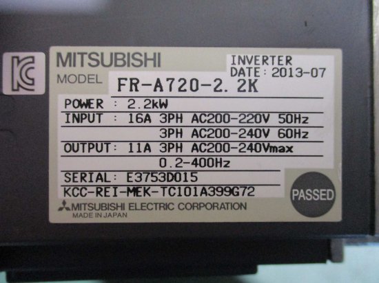 中古 MITSUBISHI FREQROL-A700 INVERTER FR-A720-2.2K インバーター 2.2kW
