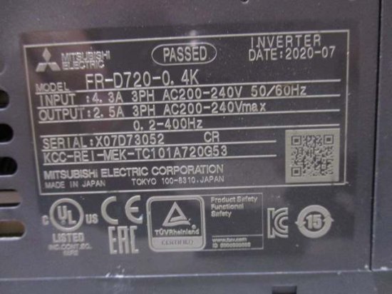 中古 MITSUBISHI FREQROL-D700 INVERTER FR-D720-0.4K インバータ 三相 200V