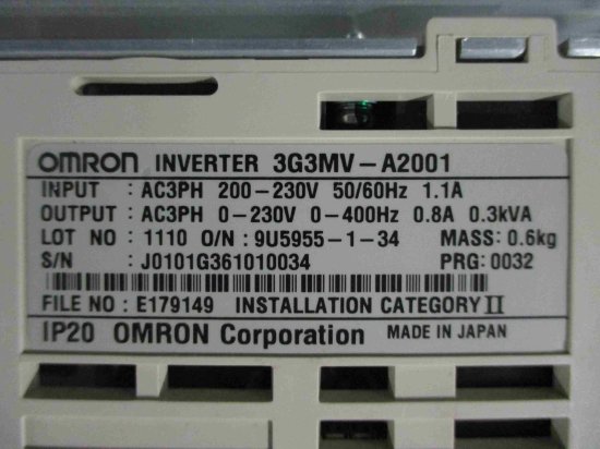 中古 OMRON 3G3MV-A2001 0.1KW インバータ
