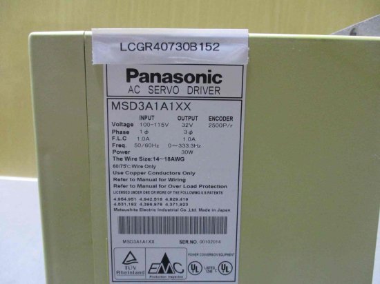 中古 Panasonic AC SERVO DRIVER MSD3A1A1XX ACサーボドライバ 30W