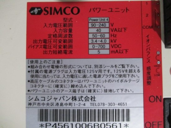 中古 SIMCO Power Unit 4 パワーユニット 90-240V 40VA 0-700VDC 5mA
