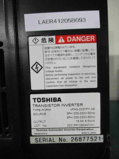 中古 TOSHIBA VFA5-2037PY-A6 インバーター 16.5A 6.5kVA