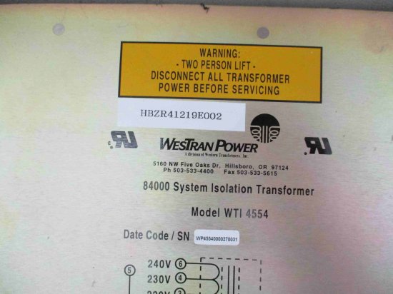 中古 WESTRAN POWER/WTI4554 System Isolation Transformer H89A<送料別>