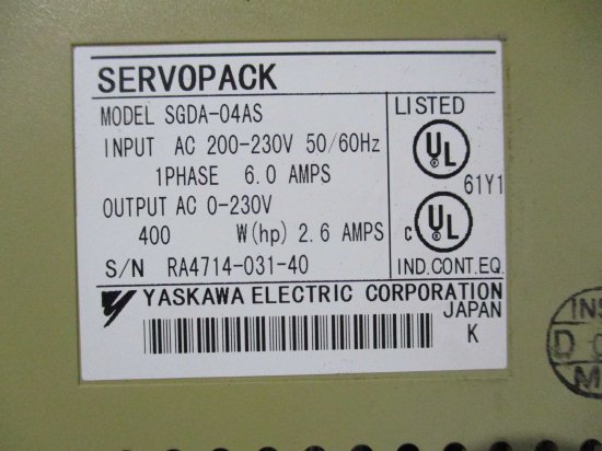 中古 YASKAWA電機 YASKAWA SERVOPACK SGDA-04AS