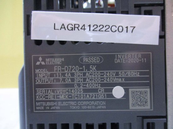 中古MITSUBISHI FR-D720-1.5K 200V インバータ