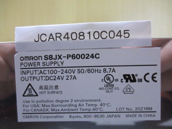 中古OMRON S8JX-P60024C パワーサプライAC100-240V 8.7A DC 24V 27A