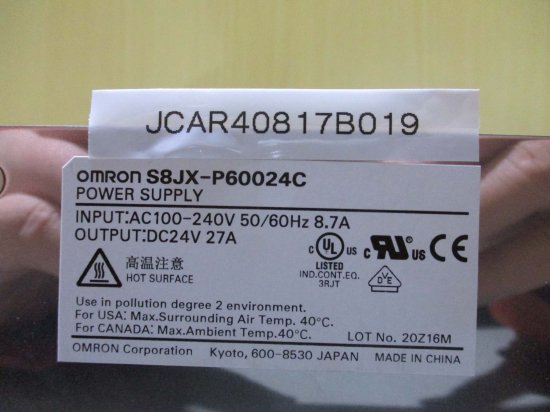 中古OMRON S8JX-P60024C パワーサプライAC100-240V 8.7A DC 24V 27A