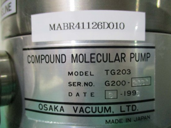 中古OSAKA COMPOUND MOLECULAR PUMP TG203 & TC200